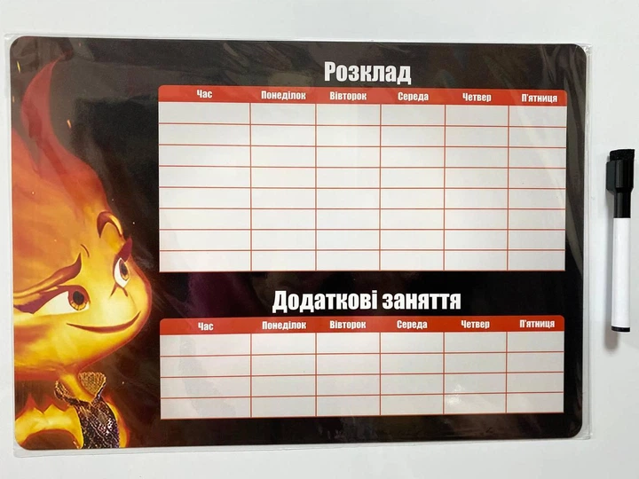 Магнітний планер "Розклад уроків та гуртки" А3 Стихія Вогонь + маркер
