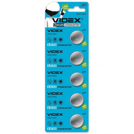 Батарейка CR2025, літієва, Videx, 5 шт, 3V, Blister CR2025 5PCS BLISTER CARD