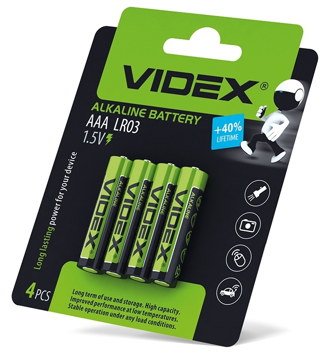 Батарейка AAA (LR03), лужна, Videx, 4 шт, 1.5V, Blister 23484