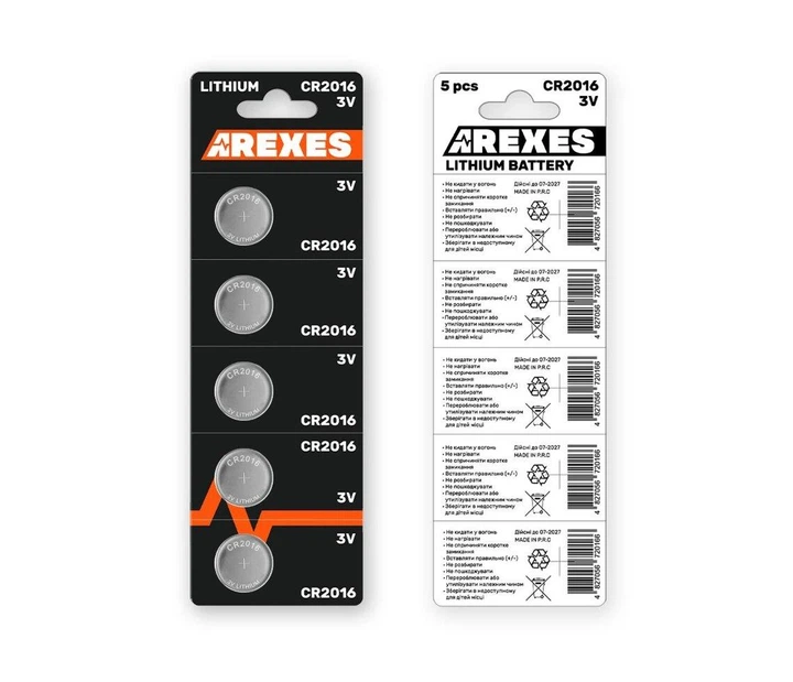 Батарейка літієва Arexes Cr 2016, 5 штук у блістері