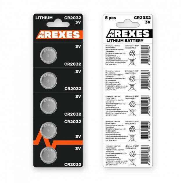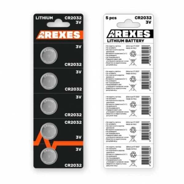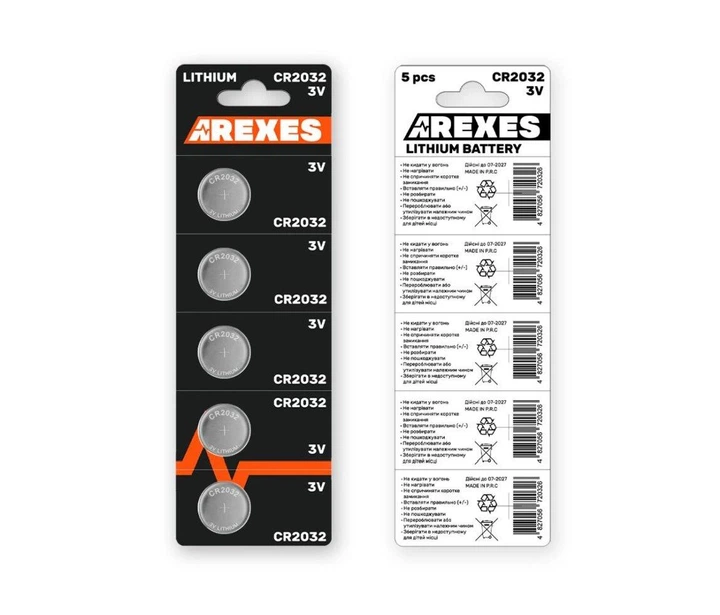 Батарейка літієва Arexes Cr 2032, 5 штук у блістері Оригінал (107693)