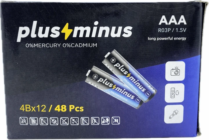 Батарейки пальчикові міні AAA R03P сольові, упаковка набір 48 штук plus minus zinc carbon
