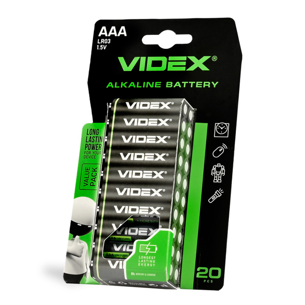 Батарейка лужна VIDEX LR03/AAA 20шт BLISTER