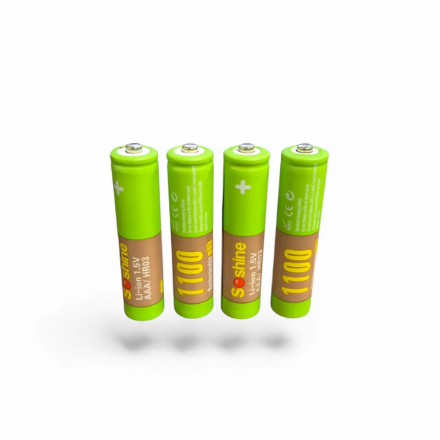 Акумулятори Soshine Li-ion AAA (HR03) 1.5V 1100mWh 730mAh – перезаряджувані батарейки, набір 4 шт