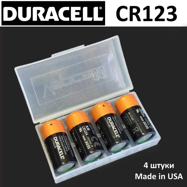 Батарейки Duracell CR123 3V-4 штуки (CR 17345) літієва, в пластиковому боксі
