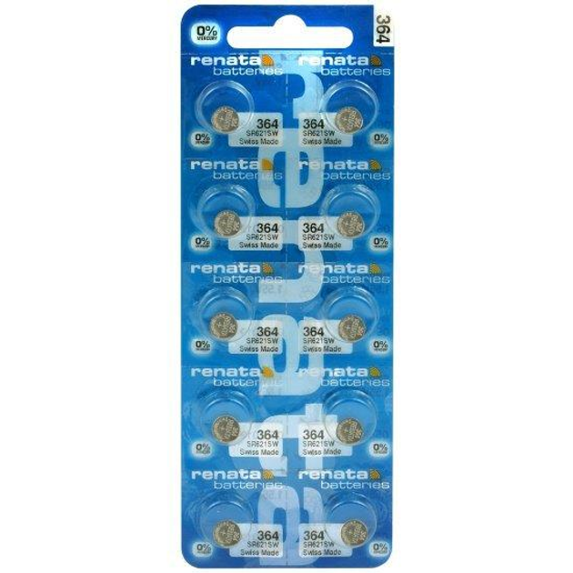 Батарейка Renata 364 Silver Oxide (SR621SW), 1.55V, 10 шт
