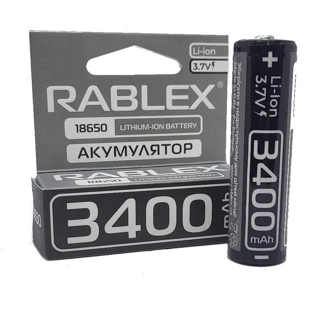 Акумулятор 18650 літій-іонний Rablex 34ООmAh, З.7V