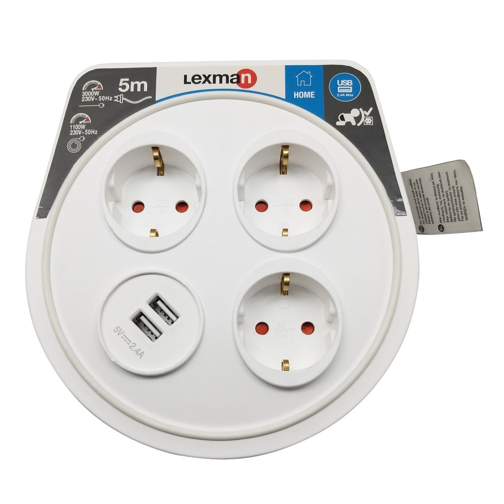 Катушка Lexman 3 гнізда 2 USB 5м 845435