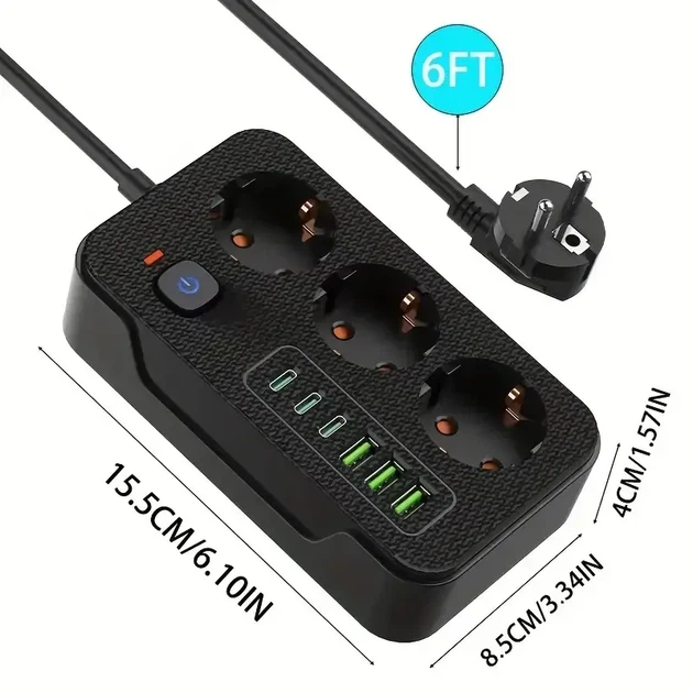 Мережевий фільтр-подовжувач Power Strip 3 + 3 USB-A + 3 USB-С 2500w (J3+6U) чорний