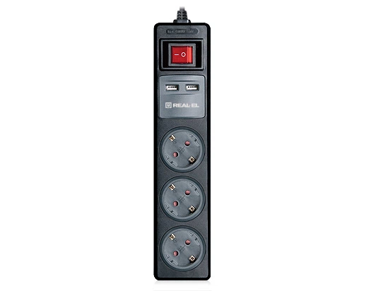 Фільтр живлення з USB зарядкою 3 розетки 1.8 м 230 В 16 А чорний