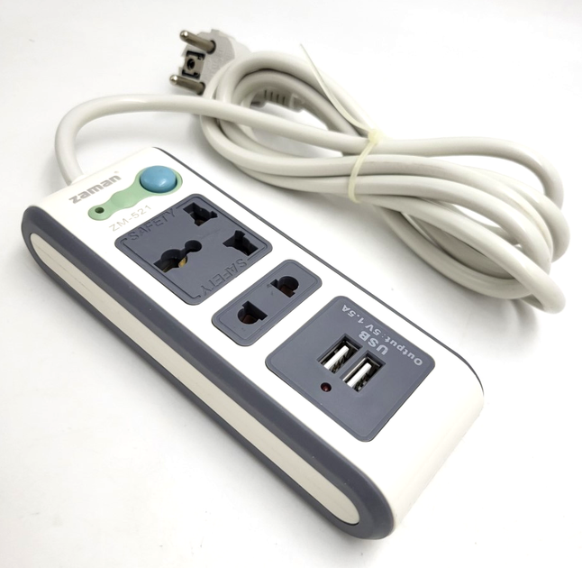 Подовжувач 2 метри на 2 універсальні розетки адаптера з вимикачем 10А 2 USB 1.5A UKC ZM-521 (2м)