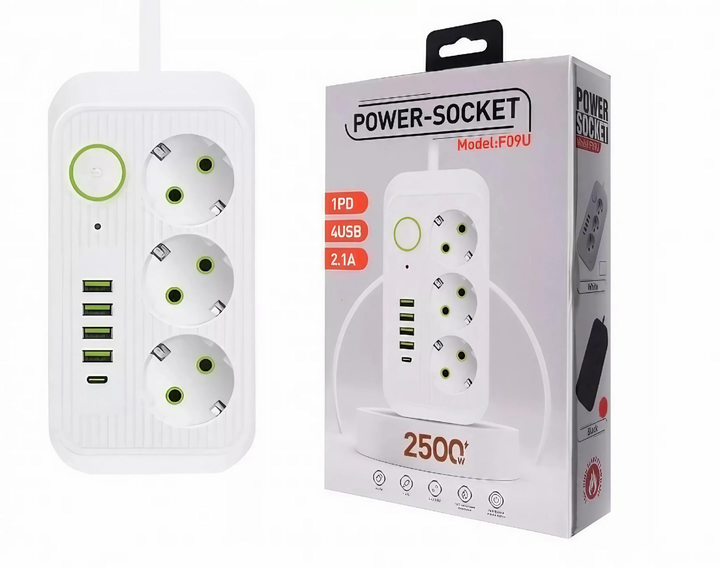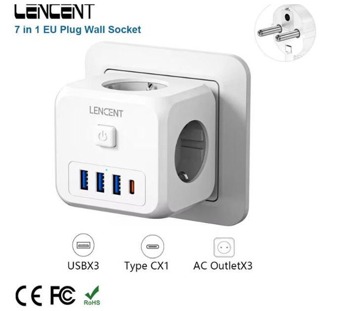 Розгалужувач мережевий фільтр LENCENT USB и Type C 7 в 1 4000W 16A з вимикачем (PA037EU)