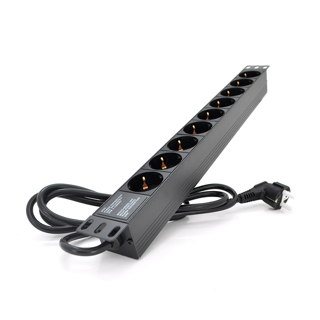 Подовжувач PiPo 9 розеток 220В німецький тип 1U 19" алюмінієвий корпус чорний кабель 1,8 м (Q25)