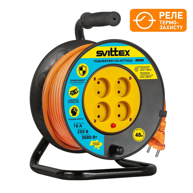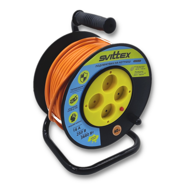 Подовжувач на котушці з термозахистом 40м, 2х1,5 мм SVITTEX 40, 1.5