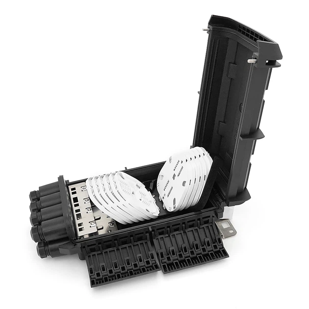 Муфта оптична Merlion ML-OP-F202, герметична, 4 введення, до 12 касет, до 288 зварок, матеріал ABS