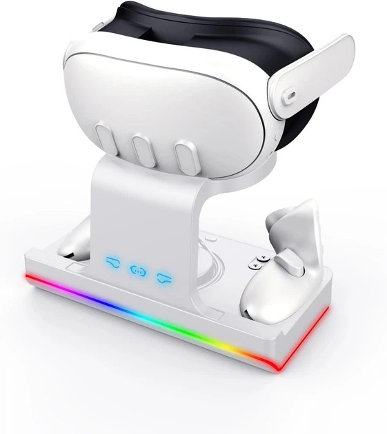 Багатофункціональна зарядна станція IPlay Q3 з підставкою та RGB підсвічуванням для Meta Quest 3/3S біла