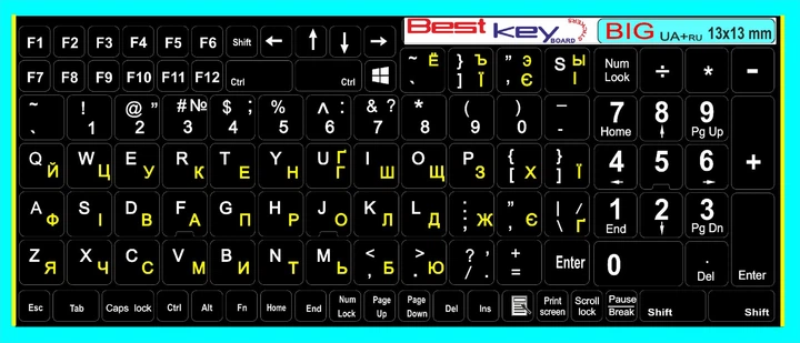 Нестираєма ламінована наліпка на клавіатуру Best Key матова непрозора ЖОВТА Повна розкладка 13х13мм, 108 кл.
