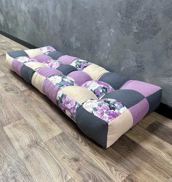 Подушка печворк на підвіконня Ashen flowers 150х50 см фіолетова