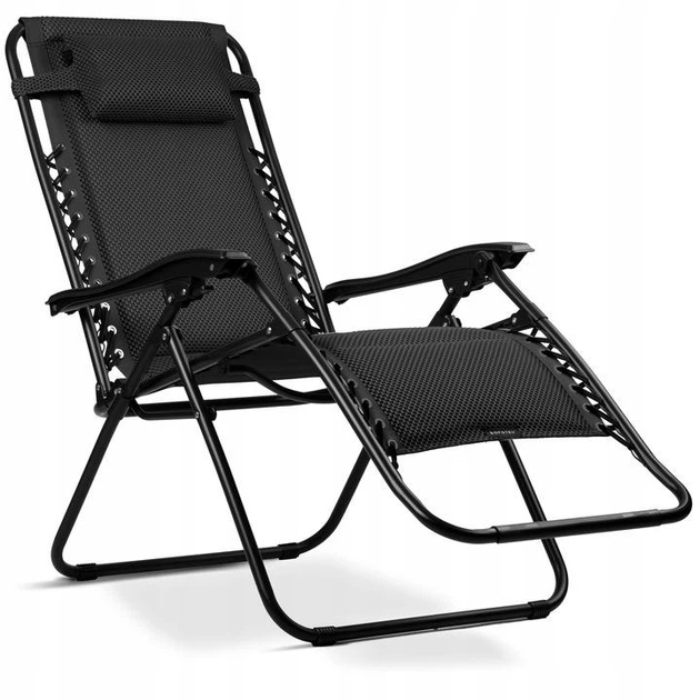 Садове пляжне крісло шезлонг розкладне ChillWell Soft з 3D-піни (до 120 кг) чорне