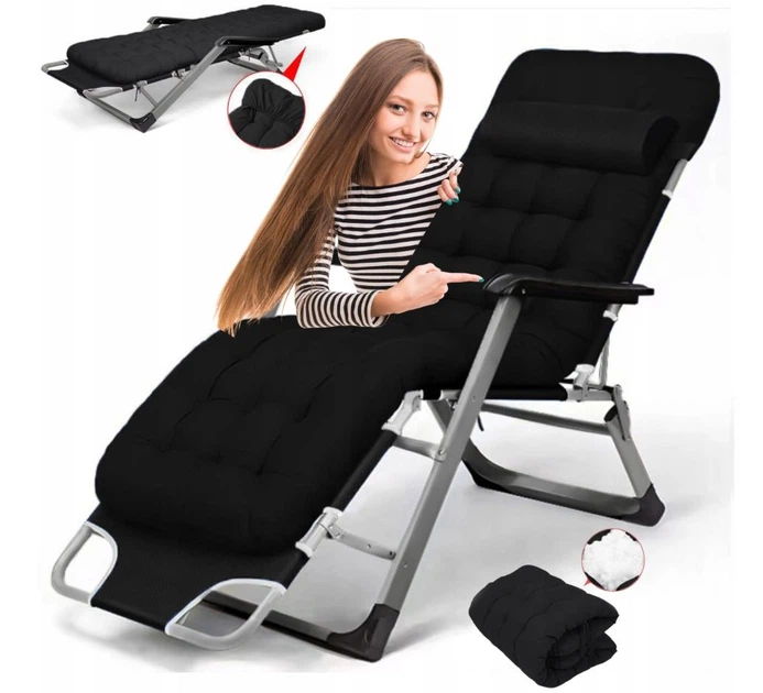 Шезлонг садовий розкладний IdealGarden чорний CT-SF02-2406 + матрац чорний