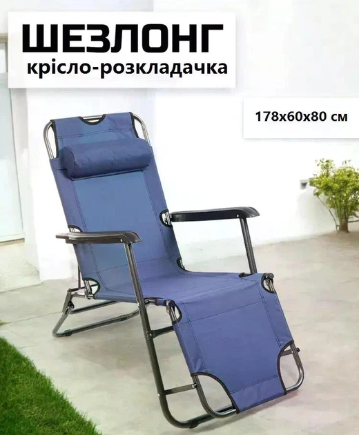 Крісло-шезлонг розкладачка з підголівником, підлокітниками та захистом від UV, комфорт у будь-якому місці ДМ86302