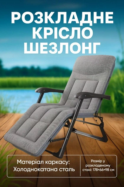Розкладне крісло шезлонг садовий із подушкою WCG FCB-S08 Сірого кольору
