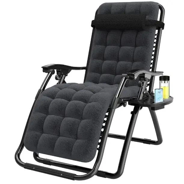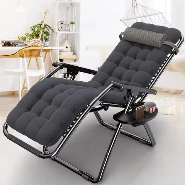 Розкладне крісло шезлонг із подушкою та тримачем 165x66x77 см до 120 кг Zero Gravity LEOBRO для відпочинку на природі в кемп