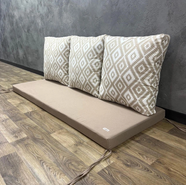 Комплект матрац з подушками на садові меблі панама 160х60х40х10 см темно-бежевий