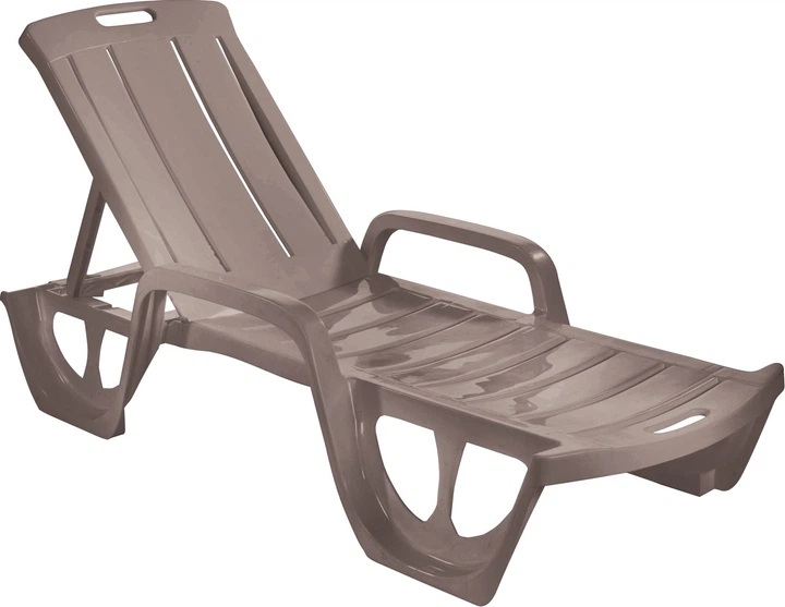 Шезлонг пластиковий Keter бежевий для дачі та пляжу з регульованою спинкою та підлокітниками (533077)