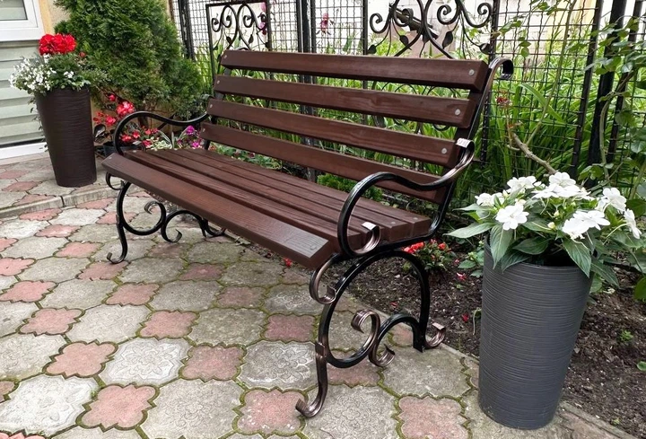 Лавка садова кована Tobi Sho Дольче з підлокітниками для дачі, тераси 130 см колір махагоній
