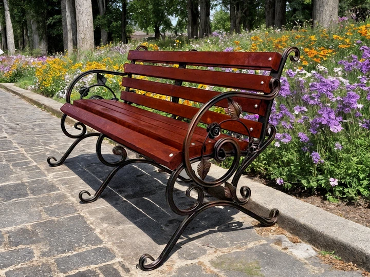 Лавка садова кована Tobi Sho Камелія з підлокітниками 200 см колір черешня