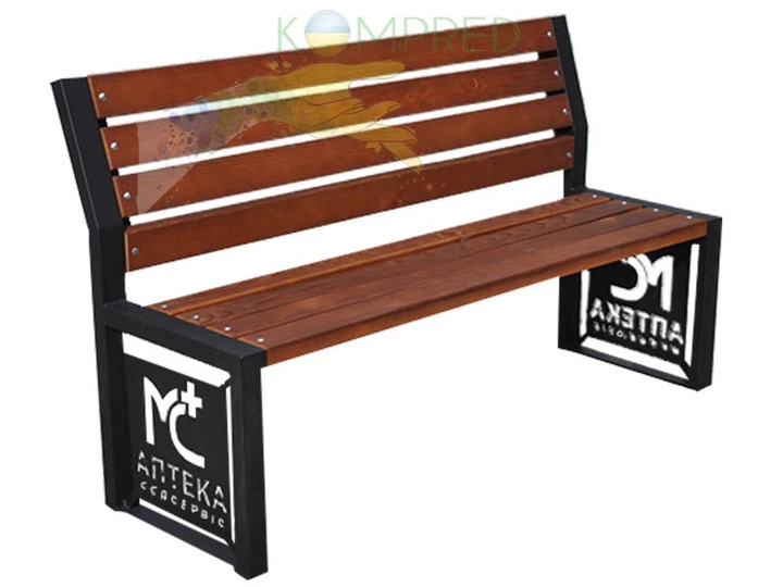 Лавка садова Tobi Sho Лофт посилена з дерев'яними накладками на підлокітниках 1,7 м колір Червоне дерево