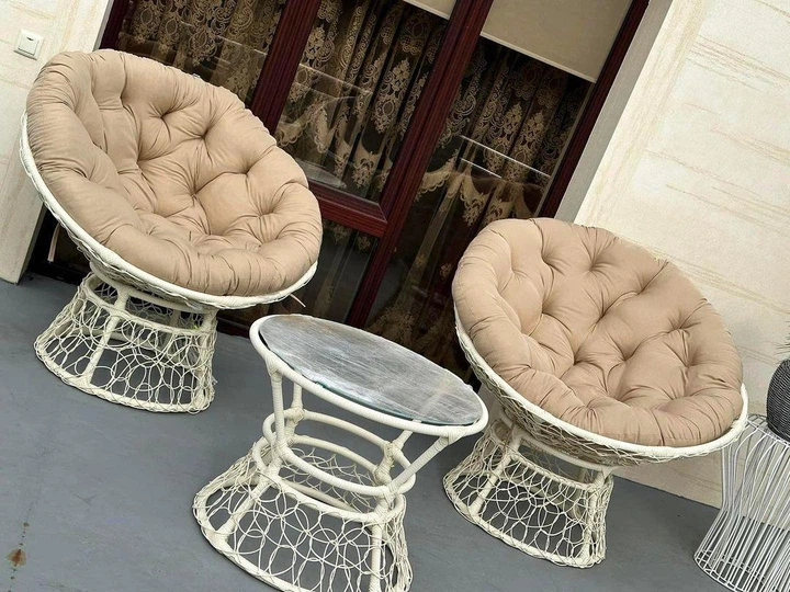 Набір меблів "ПАПАСАН" з додатковим плетенням зі штучного ротангу з бежевими подушками слонова кістка