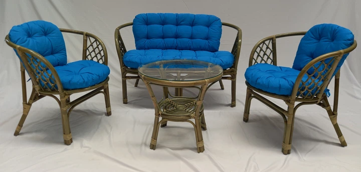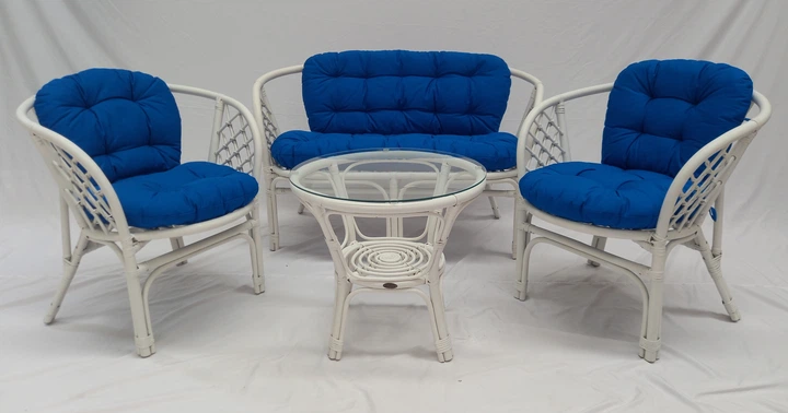 Комплект плетених меблів з натурального ротанга софа, 2 крісла та столик для дому, тераси та кафе Синій