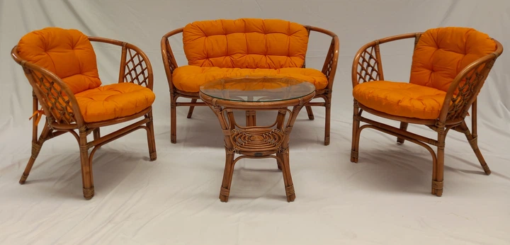 Комплект плетених меблів з натурального ротанга софа, 2 крісла та столик для дому, тераси та кафе. Теракотовий