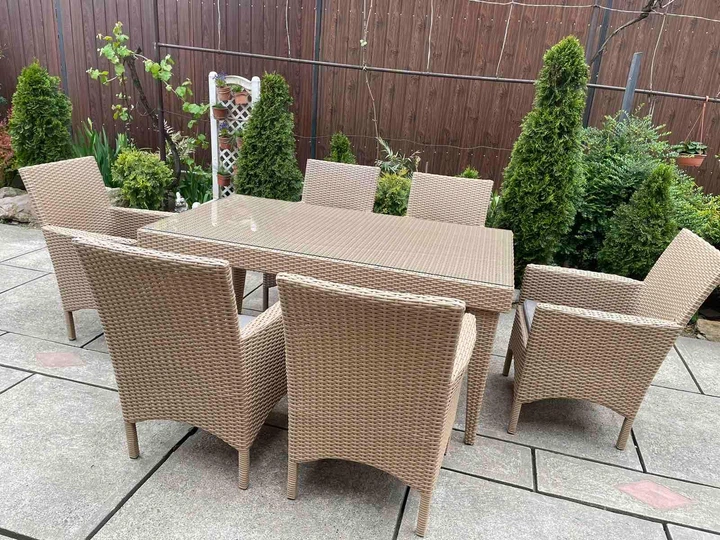 Набір меблів ротангових 6 крісел та стіл 160*90 бежевий