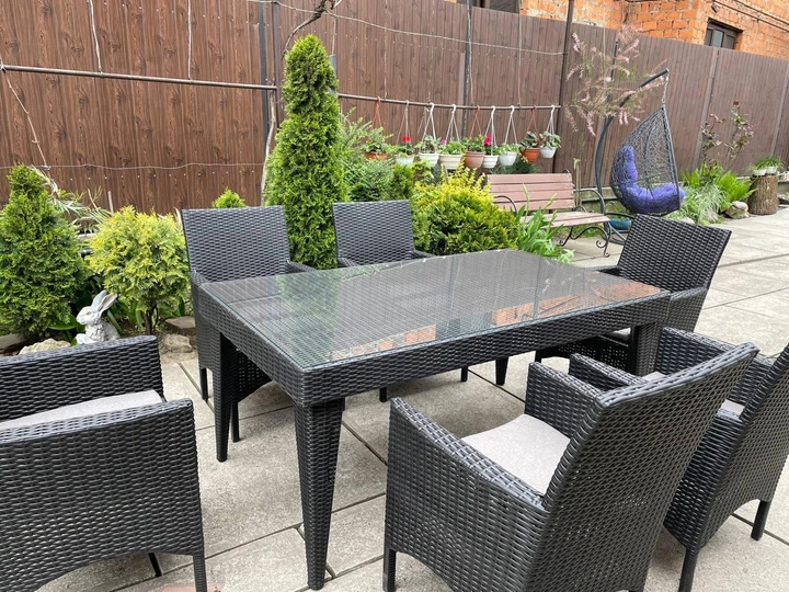 Набір меблів ротангових 6 крісел та стіл 160*90 чорний