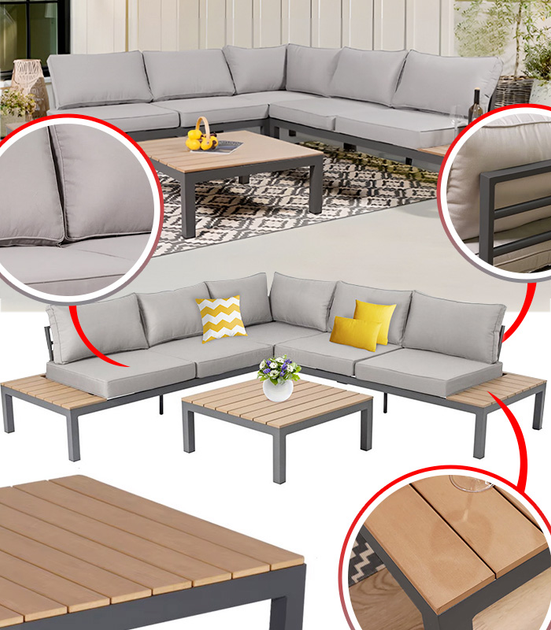 Набір садової меблів (кутовий диван із м'якими подушками + столик), Сірий