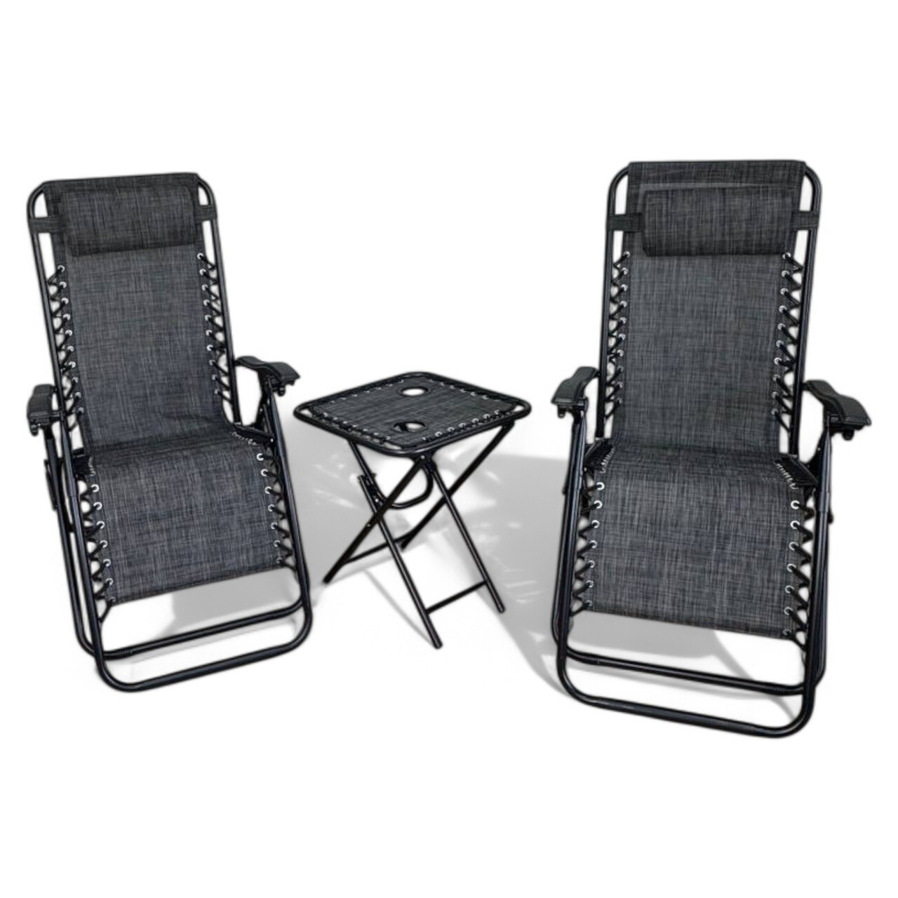 Комплект 2-а розкладні крісла-шезлонга + столик Zero Gravity LEOBRO Темно-сірий (LB-ZGT-F3-DGR) LB-ZGT-F3-DGR
