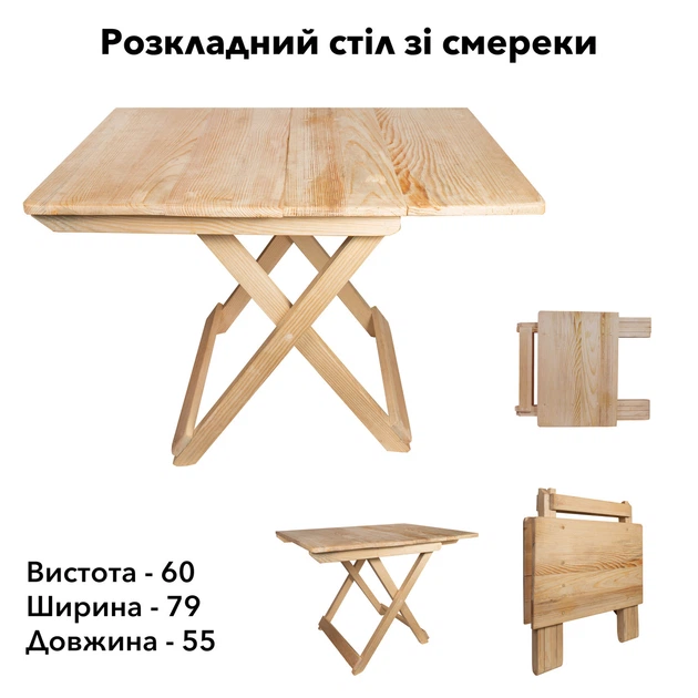 Стіл дерев'яний розкладний компактний з натурального дерева (ялина) для дому та саду