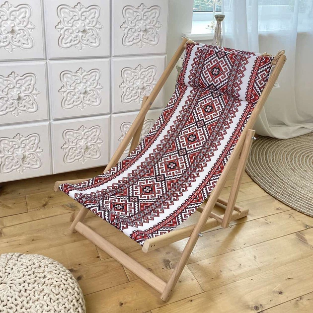 Шезлонг дерев'яний Орнамент (червоний) 110х60 см (SHZL19L028)