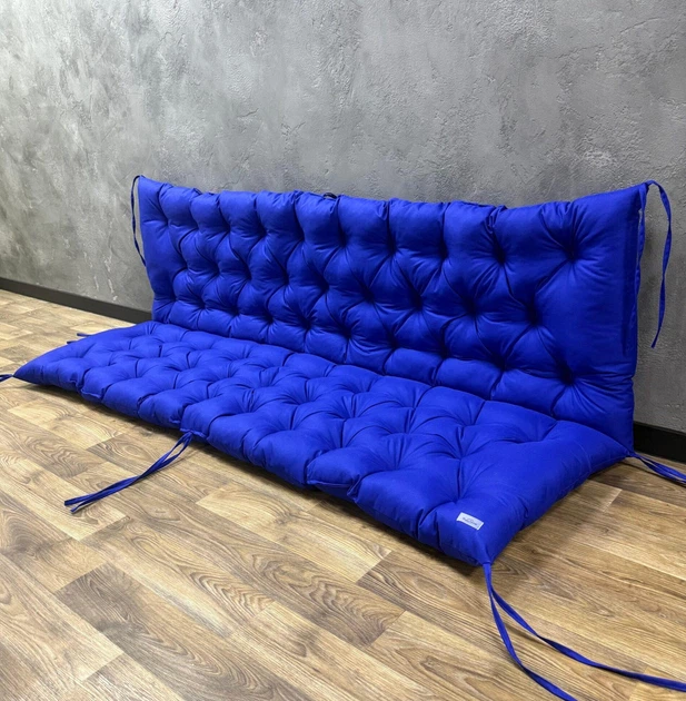 Подушка з каретною стяжкою на садові меблі Oxford 100х50х50 см яскраво-синя