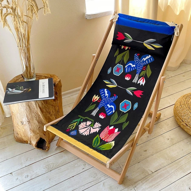 Шезлонг складаний для пляжу та басейну з принтом Синя вишиванка