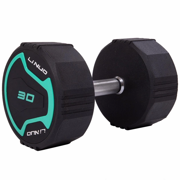 Гантель цільна професійна з поліуретановим покриттям LI NUO (TA-3614-30) 1шт 30кг Чорний