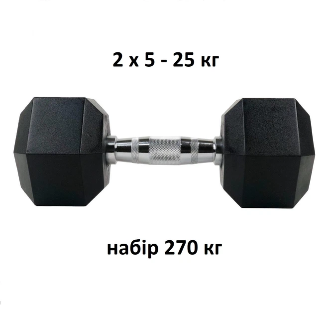 Набір шестигранних гантелі UnderFit прогумовані 2 х 5-25 кг (270 кг)