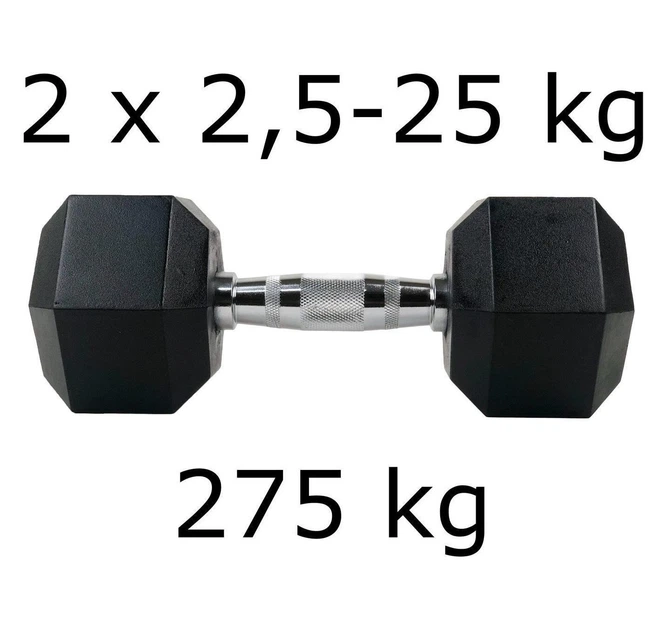 Гантелі UnderFit прогумовані Hex 2 х 2,5-25 кг (275 кг)