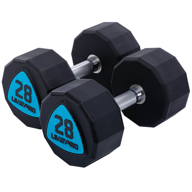 Гантелі цільні професійні з поліуретановим покриттям LiveUp LP8003-28 2шт по 28кг чорний-синій
