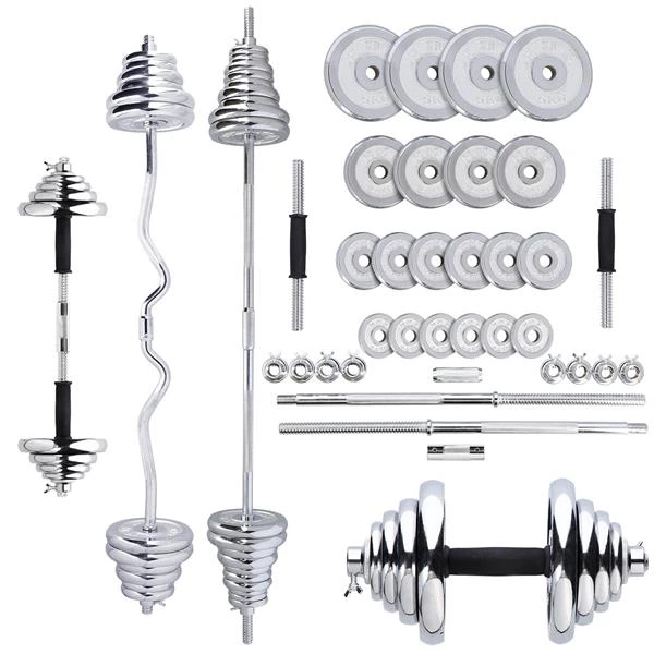 Набір металевих гумових дисків 57 кг + 4 хромовані грифі RN Sport