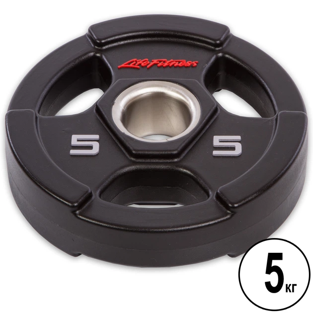 Млинці диски 5 кг Метал поліуретанові з потрійним хватом та металевою втулкою Внутрішній діаметр диска 51 мм 1 шт LIFE FITNE