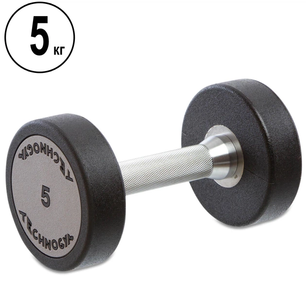 Гантель цільна професійна з поліуретановим покриттям TECHNOGYM (TG-1834-5) 1шт 5кг Чорний-сірий